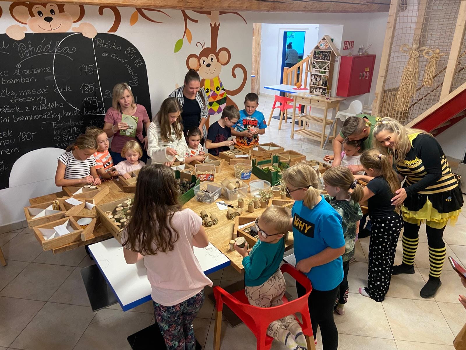 Přibližně hodina interaktivního povídání o opylování, opylovatelích, samotářských včelách a jejich ochraně v návaznosti na vydané knihy s názvy „Hmyzí pohádky z květinové zahrádky“ a „U nás v Hmyzáčkově“.