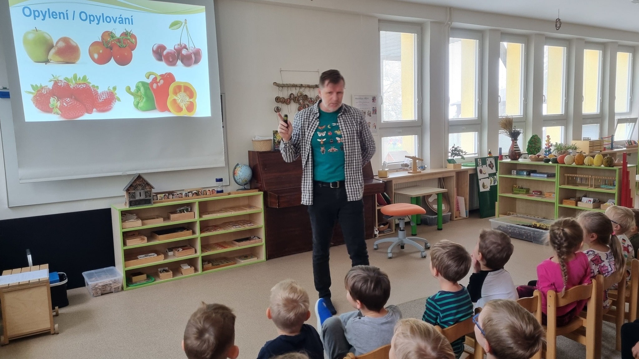 V rámci plánovaného projektu „Objevování hmyzu okolo nás“ jsme v pondělí 31. března 2025 přivítali Ing. Rostislava Poláčka, Ph.D. Jelikož je pan Poláček odborník na hmyz a také autor knihy „Hmyzí pohádky“, propojili jsme jeho přednášku „Kam mizí opylovatelé a proč je musíme chránit?“ i s březnem – měsícem knih.